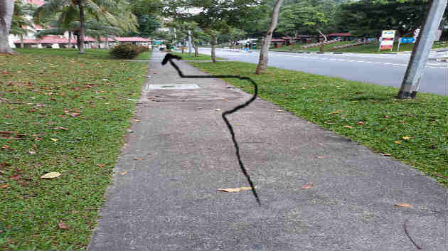 Have you ever seen these dark marks on the pavement? They are normally the remnants of a praying session, where paper incense was offered and burnt. In the wee hours of the morning, the estate cleaner has already swept up the paper ashes, so these are the marks left by the burning. If you can, try to avoid walking across these marks. And if you really cannot avoid, just say a silent “excuse me” as you walk across the marks. Call it superstition, call it whatever. But it won’t harm you by making a slight detour to the grass area, as shown in the photo below.